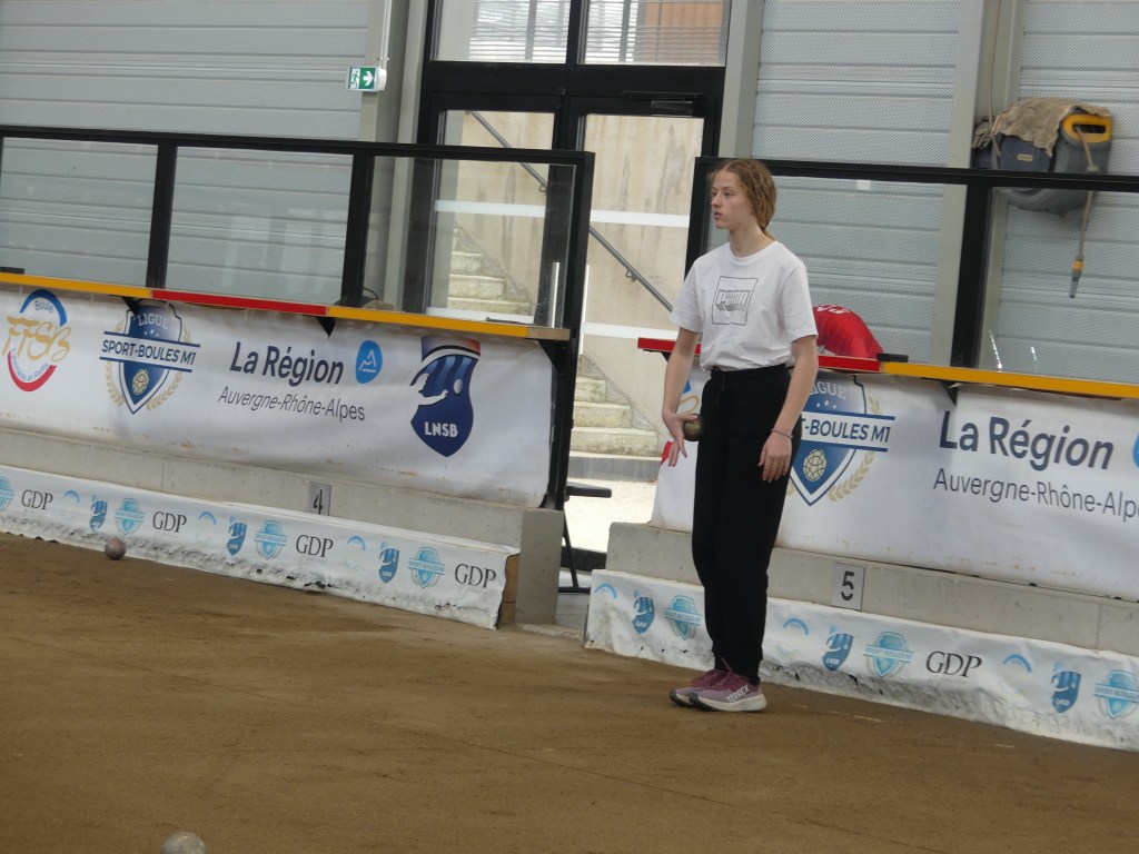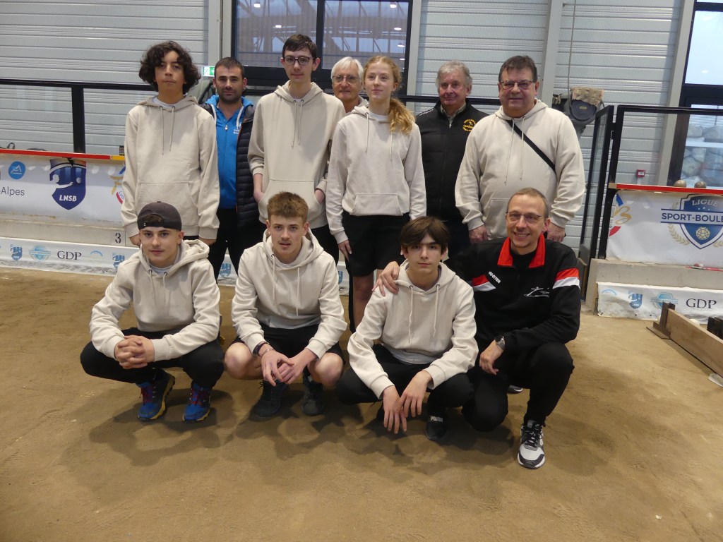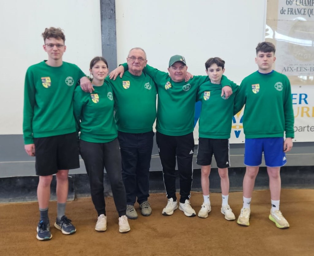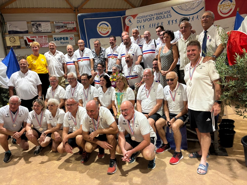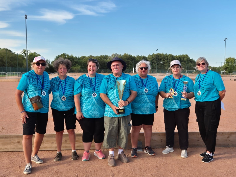 Dimanche 7 septembre à St Denis lès Bourg, les féminines des départements 03 et 63 (entraînées et qualifiées suite à 3 épreuves départementales) ont réalisé l’exploit : elles se sont classées premières de la région AURA. Nos représentantes : Marie Anne DI FOLCO, Patou MOREL et Sylvie PACALIN avec leur responsable, Marcellin RICCI ainsi que leurs partenaires du 63.