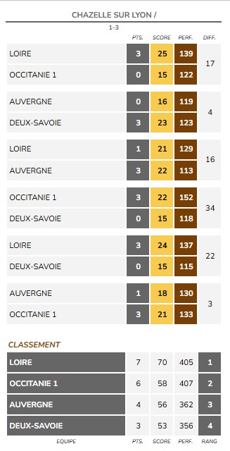 17/11/2024 : Challenge Michel BIÈVRE de la Boule Vichyssoise : l’équipe PACALIN de la B.A. St YORRE bat l’équipe RABETTE de l’ESB MALICORNE-NÉRIS par 13 à 10.