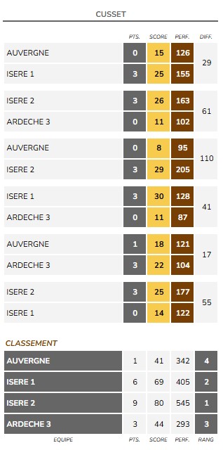 02/11/2024 : Concours national de la boule Cussétoise : l’équipe Hamon de Riom-ès-Montagne l’emporte devant l’équipe PAULHIAC de Clermont-Ferrand.