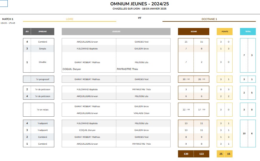 Résultats du championnat d’Auvergne double à Aurec sur Loire 15 juin 2025 : QUALIFIÉS AUX CDF DOUBLE à St CHEF les 5 et 6 juillet.