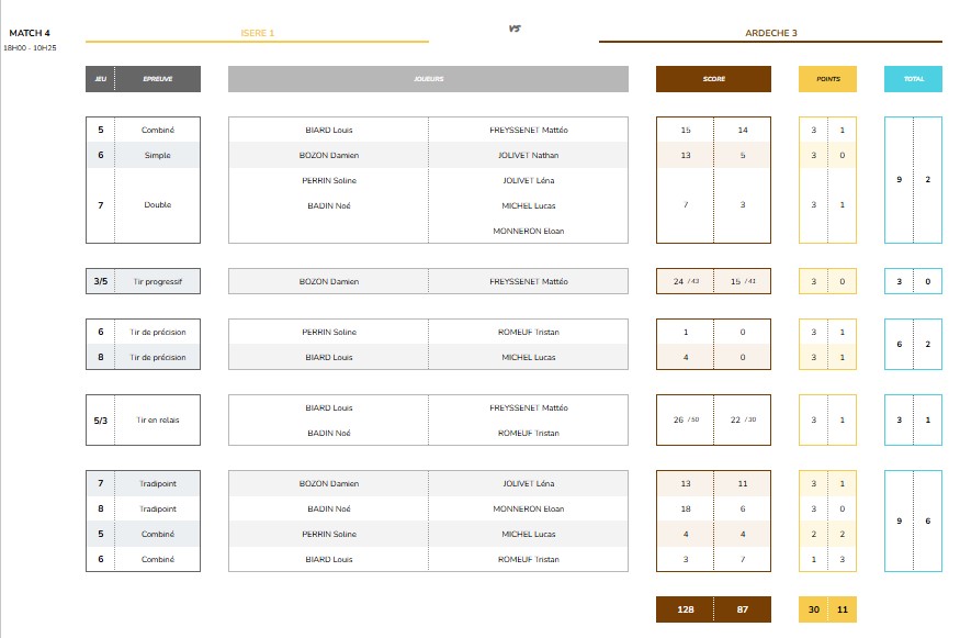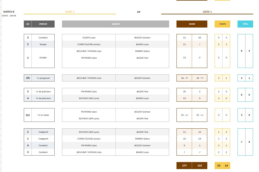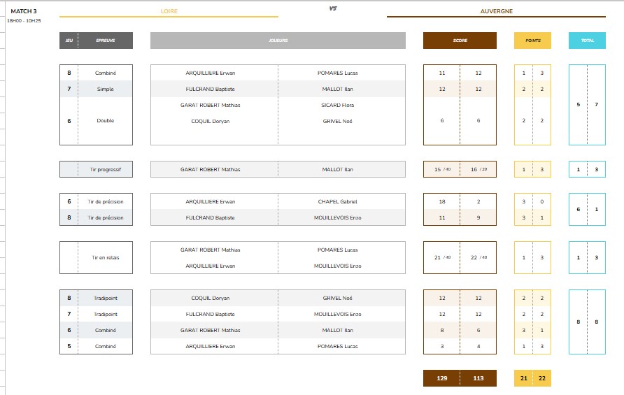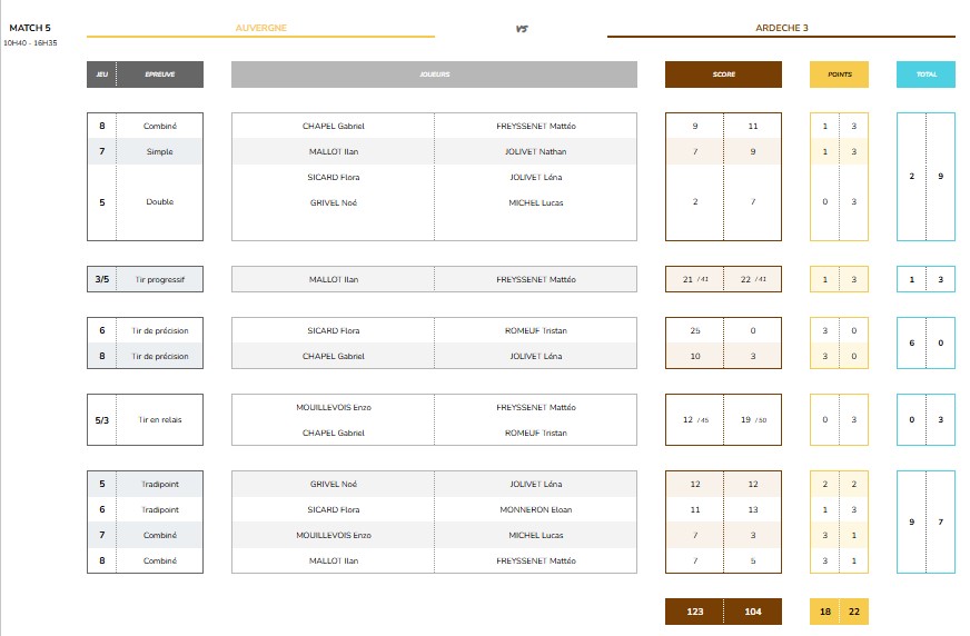 Les résultats match par match.
