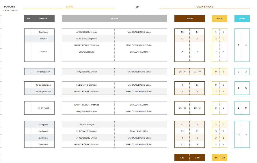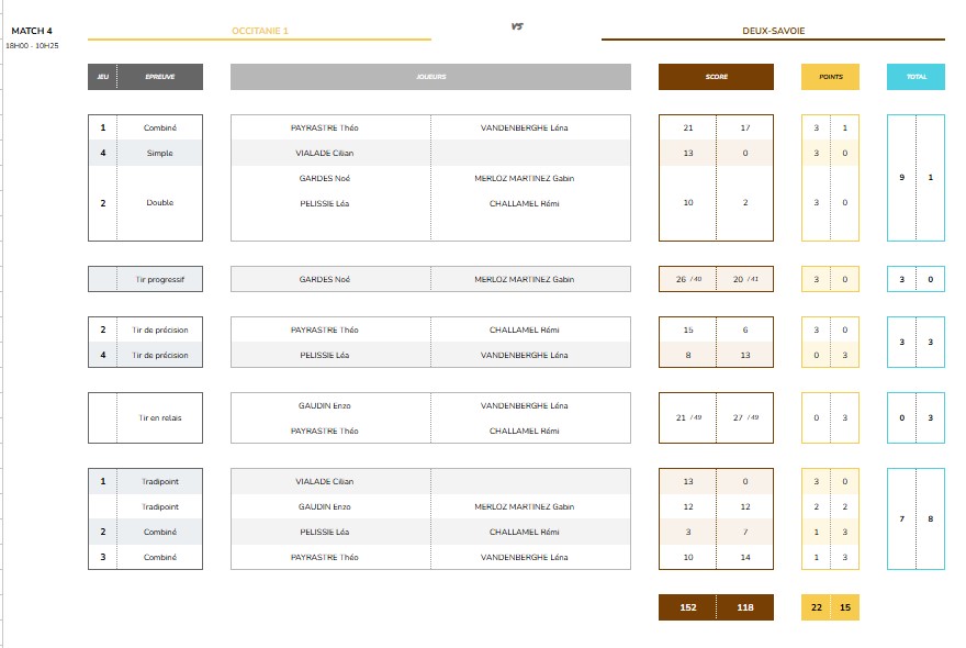 Résultats du CDF Simple : Ilan Mallot, I.B. Magnet 1/4 de finale, perd contre Jade, championne de France. Les autres participants avaient échoué en poules.