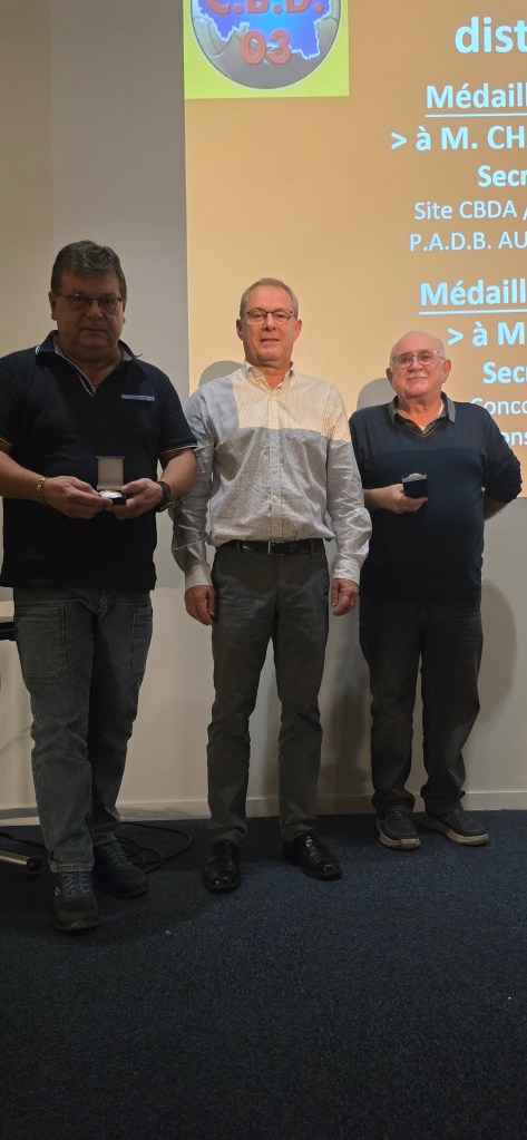 La 97ème assemblée générale du CBD Allier s’est tenue à Moulins samedi 25 octobre 2025. Riche en résultats sportifs probants, la saison 2024-2025 a donné lieu a un bilan positif sur de nombreux plans. Ci dessous quelques photos de la réunion et des récompenses aux bénévoles des clubs et du CBD.